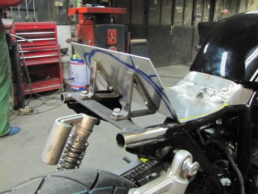 Sapka képekkel megtömött levelében elmesélte: „Alumíniumból készült az üléslap, valamint felkerültek a légszűrőtölcsérek is. A vázról levágtuk a felesleges vasakat és összekötőt hegedáltam a két vázcső közé. Erre épült az fenéktámla rögzítése, valamint a farokidom tartója is.