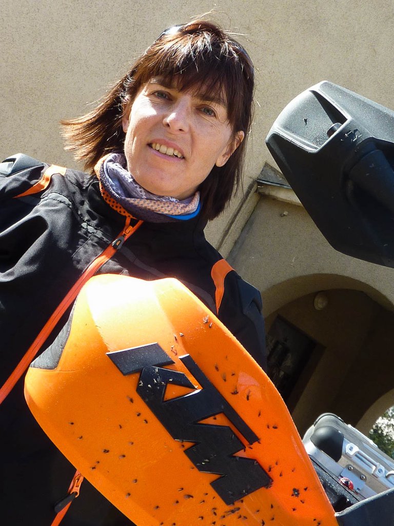 Az egyik utazó Barbara Kenedi, a KTM gyár alkatrész és kiegészítő részlegének igazgatója: lelkesen mesél, hisz hat másik nyelv mellett tökéletesen beszél magyarul az egykori enduró versenyző és lelkes túrázó. Partnere, Peter Höllbacher szintén offroad specialista.