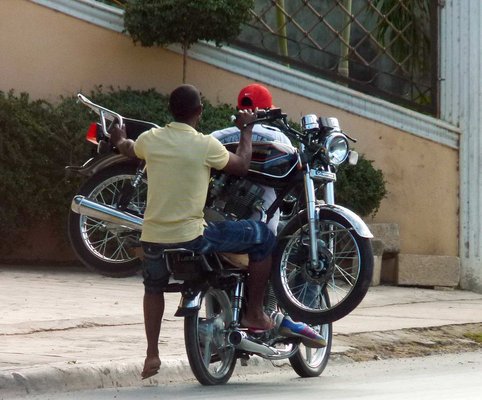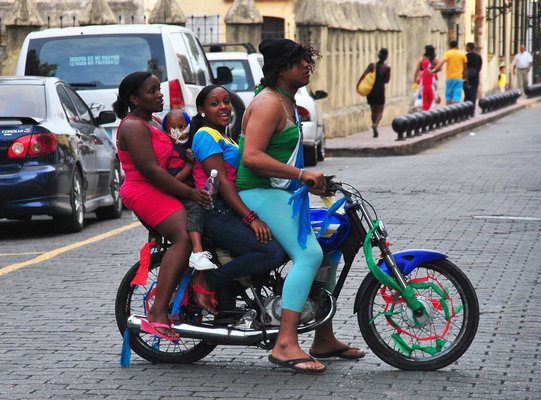 Egy este a sok gyaloglástól elfáradva és a kis utcák hálózatában eltévedve magam is felpattantam egy bérmotorra. Egy brutálisabb fekvőrendőrön átugratva (sok van belőlük, mert csak ezekkel lehet rászorítani a dominikaiakat a sebességhatárok valamelyes betartására) majdnem lerepültem az ülésről.
