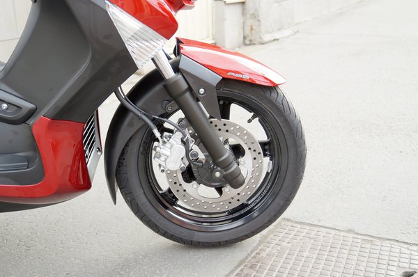 Az X-Max természetesen egyhengeres. Vízhűtéses, SOHC négyszelepes blokkal rendelkezik, amit a B125-ben megengedett 15 lóerőre csavartak fel. Nyilván befecskendezős, de ezzel a járás, a fogyasztás és teljesítmény terén is profitálunk. A fékek egész komolyak: elöl-hátul egy-egy tárcsa, 267 illetve 240 mm átmérővel, de az első fék kétdugattyús, sőt, ABS is rendelhető.