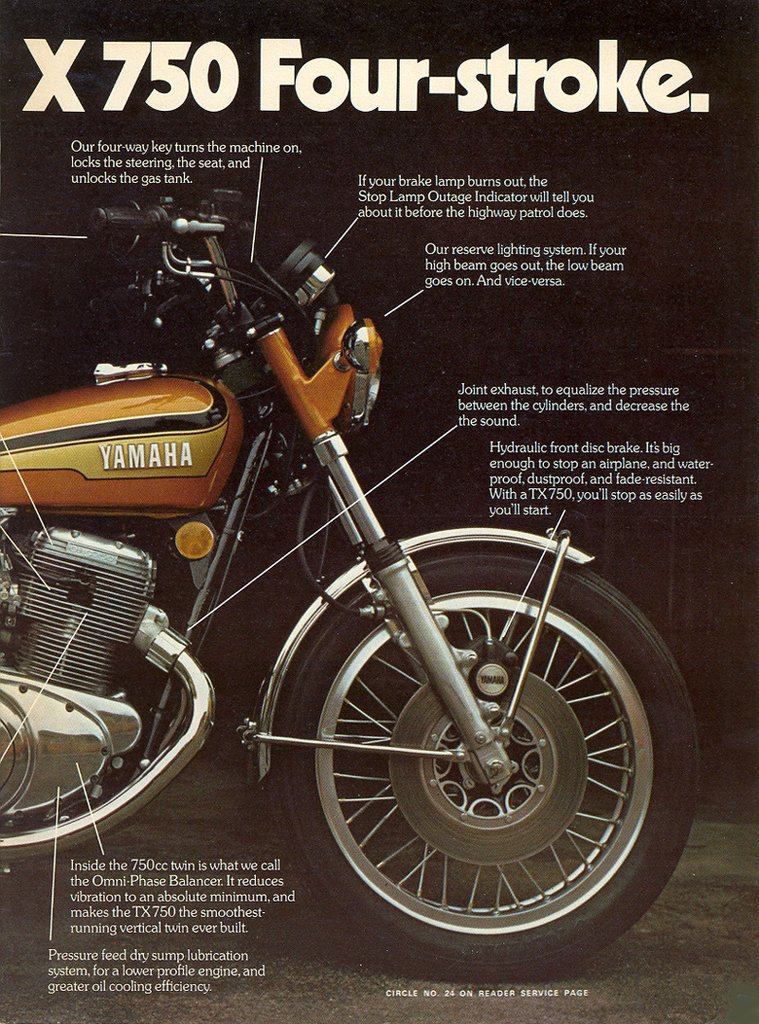 Mire Németországban engedélyezték, 53 lóerő lett belőle, de így is rendkívül jól fogadták a szép és harmonikus motorkerékpárt. Amennyire gyorsan felkapták a TX750-et, olyan gyorsan dobták el – ez lett a Yamaha történetének egyik legnagyobb piaci bukása.