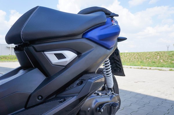 A csomagtartó mérete csökkent: míg a régi verzióban simán elfért a bukósisakom, addig az új modellbe sehogy sem tudtam betuszkolni. Az ülés nyílása is eltér, 2013-tól már kétfelé nyílik az első és a hátsó ülésrész. A kulcs balra fordításával érjük el az olaj- és benzintartály töltőnyílásait. Lehet, hogy a széles testalkatomból adódik, de a két tükröt sehogy sem sikerült olyan pozicióba tekernem, hogy ne lógjon be a képbe a vállam. A motorra egyébként rendkívül jó Michelin gumik kerültek, amelyek a pontos és jól adagolható fékekkel megfelelő biztonságot nyújtanak. A típus a külföldi eladások miatt terjedt el Magyarországon, hisz miután a nyugati fiatalok megunták, a hazai nepperek már mehettek is értük. Rengeteg ilyen van itthon, de pontos számot senki sem tud, hisz a robogók és segédmotorkerékpárok regisztrációjának teljes hiánya miatt őskáosz alakult ki.