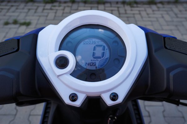 Próbáltam elveszni a menürendszerében, de erre esélyt sem kaptam: csak napi számláló és a kilométeróra-állás között válthatunk az amúgy nagy és kesztyűben is jól nyomkodható gombbal. A kategóriatársaknál ennél több funkciót is előhívhatunk, igaz, nem tudom, kit érdekel például a motoron eltöltött idő, vagy az átlagsebesség. Az Aprilia SR50-en még a töltésfeszültséget is figyelhetjük, bár a 14 éves átlagfelhasználók szerintem ezzel nem foglalkoznak.