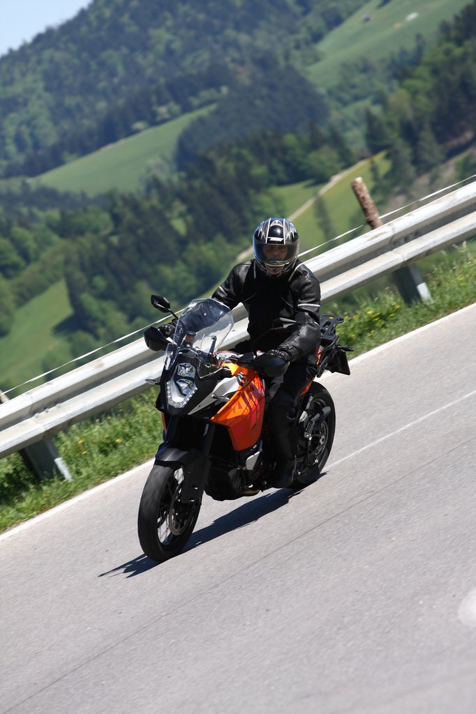 Életem első motoros bemutatója volt ez, a KTM-es belső tesztelés állítólag másfélszer ilyen tempóban zajlik, ott szikráznak is a lábtartók. Pedig mi se mentünk lassan, az ebéden kívül nem tudnék rámutatni egy pillanatra sem, amikor engedélyezett sebességgel motoroztunk volna. Mindenesetre sose gondoltam, hogy ekkorákat tudok dönteni, pláne egy ilyen hórihorgas szörnyeteggel, pedig minden olyan könnyedén jött, mintha világéletemben ezt gyakoroltam volna, nap, mint nap.