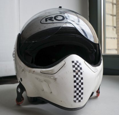 Másnap megvettem a máig használt Roof Boxer V-t. Nem emlékszem, mennyi volt, de 90 és 100 ezer forint között kínálták. Nem olcsó, de akkor ez volt az egyetlen a piacon, amelynél úgy volt felhajtható az arcrész, hogy nem a fejtetőn állt meg. Tarkóig fordítható, vagyis ha nyitottan motoroztunk, akkor sem rángatta a fejet a menetszél. Nem mellékes: a plexi eközben a helyén marad, függetlenül mozgatható.