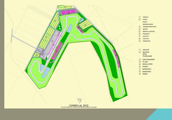 Balatonfőkajár mindössze 85 kilométer Budapesttől, rövid idő alatt megközelíthető az M7-es autópályán, amelyről jóformán látszik is a komplexum. A Hungarian Motorsport Kft által építtetett pálya teljes hossza 4215 méter lesz – amint azt megtudtuk, a tervek úgy készültek, hogy a FIM és a FIA szabályoknak is megfeleljen, vagyis nemzetközi autó- és motorversenyek rendezésére is alkalmas.