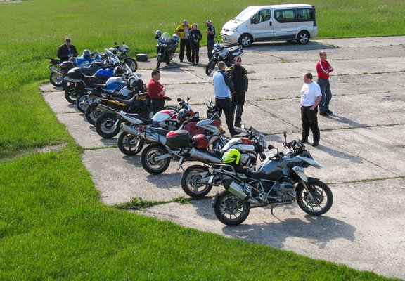 Egy fontos dolog azonban hiányzott az alapszintű tréningből: a kanyarodás. A nap végén ugyan megmutatták a különféle stílusokat – az egyenes angolt, a motort maga alá döntő franciát, a versenyeken használt kiülőst és egy, ez utóbbira emlékeztető, de térdlógatás-mentes negyediket (van neki szép német neve, de ha megfeszítenek, sem jut eszembe) – de csak hogy lássunk ilyet is. Az ok nagyon egyszerű. A széles reptéri beton, amely a többi gyakorlathoz tökéletes, erre a célra nem jó. Itt mindenki olyan íven kanyarodik, amilyenen csak szeretne, hisz bármi elfér. Ezért van, hogy a kanyarodás oktatására külön félnapos tanfolyamot szerveznek egy alkalmasabb helyszínen, a Kakucs Ringen.
