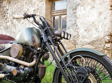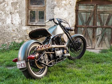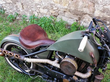 A mester udvariasan fogalmazott a nagy laprugókkal csillapított üléssel kapcsolatban: a tulajdonos testalkatához csak ez igazodik, bizonyos részeinek szükség volt a széles és öblös ülőlapra. A gyönyörű bőrözést a hazai custom leather mestere, Nogg készítette, majd Szakál antikolta – színe és kiképzése tökéletesen illeszkedik a gép többi részéhez.