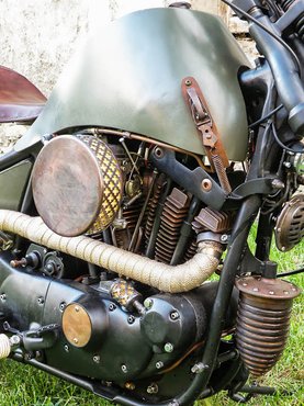 A cél az volt, hogy a meglevő vázra egy lényegesebben archaikusabb formájú és színű motort hozzanak össze. A régies külsőt a hagyományos formájú alkatrészeken túl a speciális színvilággal érték el: a zöld és fekete elemek rendkívül hangulatos egységgé álltak össze az antikolt réz felületekkel.