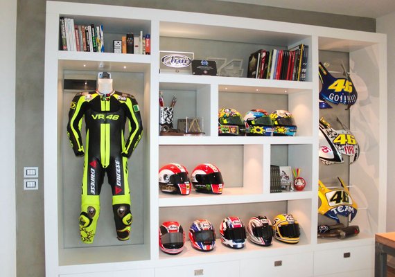Ez a háromszobás lakás, ahol most ülünk. Az elmúlt években lett volna lehetőségem fejleszteni, és kialakítani egy önálló márkát, sisakkal, bőrruhával, kiegészítőkkel, de az nem az én világom. Nem akarok termelni, a fejlesztés érdekel, a dolgok kitalálása, és megtervezése. Négy ember dolgozik itt, és még két fő Riminiben, egy kis műhelyben. Ők festik a sisakokat, önállóan működnek. Nem akarok pénzt elvenni senkitől, ezért is maradtunk ebben a struktúrában.