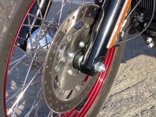 Bár lényegre törően puritán a motor, van pár extra tudománya. Például ABS segít a fékezéskor, méghozzá egész ügyesen. Az első fék működtetéséhez nem árt az erős kéz, nagy lassulás eléréséhez rendesen rá kell markolni a karra. Ezt nem tudom negatívumként értékelni, mert úgy vettem észre, hogy olyankor, mikor igazán nagyot akar fékezni az ember, jó, ha erősen, határozottan tartja a kormányt (ez bármilyen motorra igaz). A tizenkilences első kereket rendesen lassítja az egy darab tárcsa, az ABS finoman teszi a dolgát. Egy sportmotor duplatárcsás, kétszer hat dugattyús rendszeréhez azért nem mérném, de talán ez nem is követelmény ebben a szegmensben.