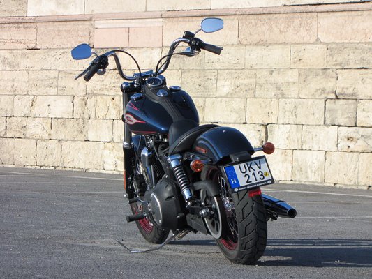Túrázni csak az igazán kemények indulnak el egy ennyire spártai motorral, hiszen se rakodóhely nincs rajta, se szélvédelmet nem ad. De rohangászni, városban közlekedni, kisebb kiruccanásokat tenni tökéletesen alkalmas. A lábtartók és a kitámasztó helyét meg kell szokni – nekem egyik sem állt igazán lábra. Megszokás helyett természetesen az irtózatos mennyiségű gyári és aftermarket H-D kiegészítő közül is választhatunk alkatunknak, ízlésünknek megfelelőt. Ha valakit nem visz rá a lélek, hogy akár csak nyeregtáskákkal változtassa meg az összképet, marad a hátizsákozás – de vigyázat, a hátsó sárvédőre így kell majd egy védőfólia, mert randán össze lehet karcolni a táskával. Nagyon jó dolog a Harleyk kulcsnélküli, immobilizeres rendszere. Nem kell matatni, kulcsért kotorászni: ha nem volt lezárva a motor, csak felül az ember, zsebében a kulccsal a motorra, elfordítja a gyújtáskapcsolót, és már mehet is.