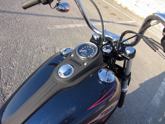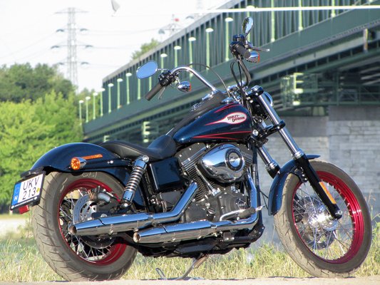Nagyon kíváncsi voltam, milyen a Twin Cam blokk egy csupasz motorban, mert a nagytestű Street Glide dinamikája nem hozta azt a szintet, amit egy nyomatékos, nagyköbcentis vékettestől vártam. A Dyna Street Bob jó nyolcvan kilóval könnyebb a túramotor Street Glide-nál, emiatt reményekkel tele ültem a pici szólónyeregre. A kicsinyített majomkapaszkodóra téve a kezeimet furcsa volt a póz, a magas kormány miatt tényleg úgy éreztem magam, mint ha majom lennék. Nem is önmagában a kormány mérete és szöge, sokkal inkább a lábtartó pozíciója és a kormány formája együtt az, ami miatt eleinte kellemetlenül éreztem magam a motoron, sőt, piros lámpánál állva meg voltam róla győződve, az emberek vihogva mutogatnak rám.