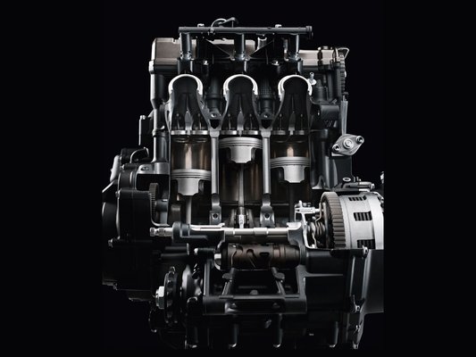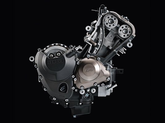 Az MT-09-cel most egy harmadik hengerelrendezés debütál: a könnyű, keskeny, végletekig lekönnyített, pörgős, felhasználóbarát motort ígéretét a soroshármas blokkban találták meg. 850 köbcentis lökettérfogat, 115 lóerős teljesítmény (10 000 ford./perc) 87,5 newtonméteres csúcsnyomaték. Önmagukban unalmas számok, de azért vannak itt érdekességek, ha alaposabban belerágjuk magunkat a 09-be.