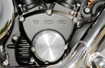 Az első komoly fejvakarások a tárgyalóban akkor következhettek be, amikor már eldőlt, hogy az új bringa sportos futóművet és alumínium vázat kap. Utóbbival 10,5 kilót spóroltak a Road Starhoz képest, merevségi adatot nem ad meg a Yamaha, de annak is javulnia kellett. Aki próbált már régi VMaxot, tudja, mekkora csapás egy gyenge vázú, erős motor. Alumínium lett a lengővilla is, de feketére festették, pedig egy techno-orientált szerkezeten nem lenne hülyeség hangsúlyozni a minőségi részleteket. Tekintsük tehát a fekete festést egyfajta cruiser-féregnyúlványnak.