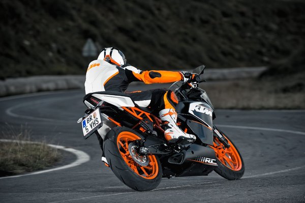 Az RC sorozatot egyébként a Moto3 versenysorozatban igen sikeres, 33 futamából 26-ot megnyerő RC250 versenygép ihlette. A Duke-okban is megismert térhálós acélvázat megtartották, igaz, kicsit módosítottak rajta, hogy jobban igazodjon a sportos, agresszív vezetési stílushoz, rövidebb lett a tengelytáv is. A futóművet is átdolgozták, a 43 milliméteres, fejre állított WP villák megmaradtak, de sportosabb hangolás és kisebb rugóút jellemzi az RC-ket. A hátsó monoshock rugóstagokat szintén a WP szállította. A fékek a három modellnél megegyeznek, előre 300 mm-es, hátra pedig 230 mm-es Brembo tárcsát szereltek.