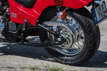 Pörgős a blokk, de nem vészesen és nem nyomatékszegény, simán együtt lehet vele élni, nem érzi az ember stílustisztátlannak. Ha a vízhűtő nem meredezne ott elöl a vázscsövek kötött (igaz, viszonylag diszkréten), tisztavérűnek nevezném; a 800-as Szpori se sokkal nagyobb. Léghűtéssel nyilván még szimpibb lenne. A blokk így sem lett randa: nem Kawasaki Vulcan-féle (nem biztos, hogy szándékosan) technokrata-blokkos szoftcsopper formatervet kapunk, hanem szép kis ál-léghűtést, azaz hűtőborda-imitációt.