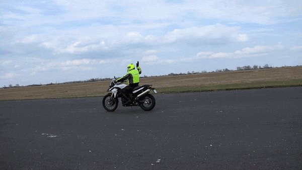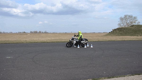 Miután jól bemelegítettünk, mert ez a motorra fel-le rendesen átmozgatta az embert, meg kellett tartani a gépet. Két ujjal, mellette állva. Először megkeresni azt a pontot, ahol a motor pont balanszban van, megtartani (ilyenkor egészen minimális erő is elég, hogy nyugalmi helyzetben tartsuk), majd elengedni, és a másik kezünkkel megtartani, majd így szépen körbejárni a gépet. Ilyenkor van egy-két másodperc, amíg a motor gyakorlatilag magától áll függőlegesen. Nem sok idő, de arra elég, hogy gyorsan át lehessen gondolni, a négyésfélmillás motoron vajon mit sikerülne szilánkosra törni, ha eldől. De nem dől, mert ügyesek vagyunk, meg a motor hátánál most is ott áll a segítő, és megfogja a gépet, ha kell.