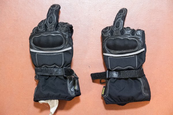 A kesztyűről már akkor sem gondoltam, hogy jó, amikor először beledugtam a kezem, és azóta ez az érzés csak erősödött. Olyan, mintha a vegyészek megvizsgálták volna, melyik anyag az ember számára a legkellemetlenebb, és ebből készítettek volna egy kesztyűt. Fázni nem fázik benne a kezem. Ellenben nem is szellőzik, semennyit. Minden motorozás után rosszul voltam a saját kézszagomtól. Ezt később orvosoltam egy hálós kesztyűvel, így már csak elenyésző alkalommal kellett használnom ezt a húgyszagú nájlonzacskót. Ja, és ráadásul egy év használat után az ujjaimra ragadt a műanyag kesztyű műanyag belseje, és minden levételkor ki is fordult, visszarakni viszont szinte lehetetlen volt.