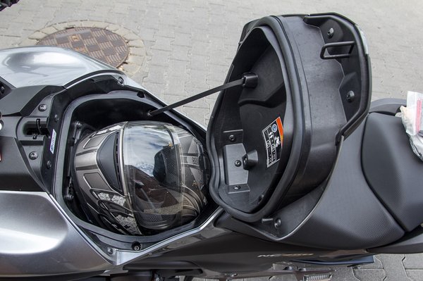Döbbenetesen alacsony, 3,6 literes fogyasztással elmuzsikált alattam, ami robogós nagyságrend. Szélvédelme ugyan gyenge, és a lábunkat sem óvja semmi az elemektől, viszont roppant praktikus a csomagtartója, passzentosan egy zárt bukósisak is belefér. Egyenes háttal lehet ülni rajta, túraendúrósan, ami az egyik legkényelmesebb motoros póz, és a széles csőkormány is növeli az önbizalmat. Cserébe városban pont a kormány miatt nehéz vele előrecsorogni a sorok között, mert sokszor egy magasságban van az autók tükrével.