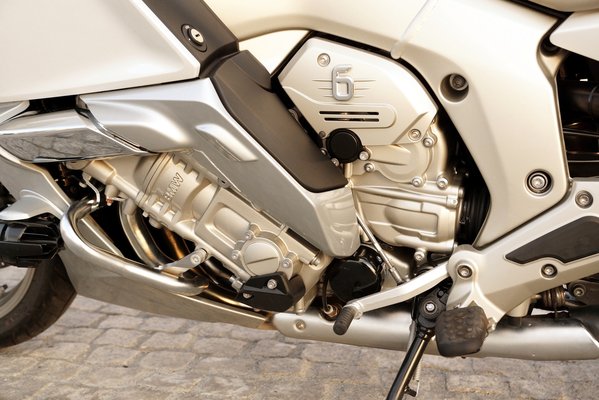 A nagy és hehéz gépet egy őrületesen mélyre épített, nagyon megdöntött hathengeres blokk mozgatja. 175 Nm maximális nyomatékkal és 160 lóerő teljesítménnyel még a 360 kilós motor is fölényesen gyorsul, még nem teljes gázt adva is el lehet érni, hogy az elektronika virtuálisan rácsapjon a gázmarkolatot tekerő kézre, amikor érzi, hogy elvesztené a tapadást a hátsó kerék, vagy túlságosan megemelkedik az első, elveszi a gázt. Szerényen csak annyit ír az adattábla, hogy kétszáz fölött van a végsebesség, de elég sokat elmond, hogy 3,4 másodperc alatt megvan a 0-100. Ami megdöbbentő, hogy elvileg 6,5-7 liter körül eljár még városban is. A számítógép legalábbis ennyit mutatott, de sajnos 200 kilométerre 18 litert tankoltam. Az is megeshet, hogy az előző tesztelő nem csurgatta rendesen tele a tankot.