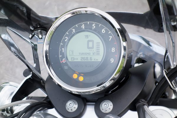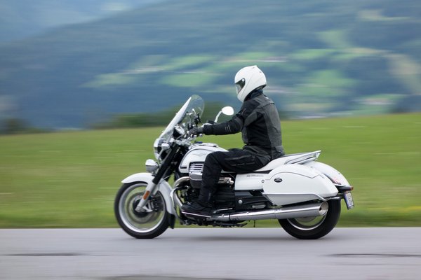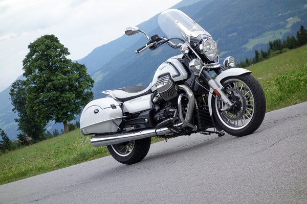 A blokk hosszában van beépítve, (a hengerek épp emiatt keresztben állnak), gázadásra billeg is, mint egy BMW. Elnyújtott íven lehet is játszani, a markolatot meghúzva jobban bedől vagy kicsit feláll a motor. Nem vészesen, de érezhetően. Van ABS, meg kipörgésgátló, ami igen jól tud jönni egy ennyire nyomatékos blokknál, síkosabb úton hamar el kezd villogni a visszajelző: épp most mentettem meg a szaros segged, ragazzo! A forma inkább csopperes, mint krúzeres, az ős-California ilyen szempontból nekem jobban bejött. Sok szépen kidolgozott részlete van, a plexit tartó csavarok esztergált alátétjén hosszasan legeltettem a szemem. Valamikor ki kellene próbálni tíz kilométernél hosszabb távon is. Lehet, hogy ha összeszokik vele az ember, nem csak városon kívül lehet használni.