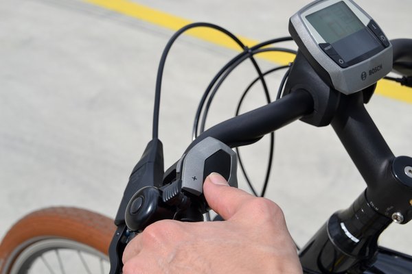 Bár a külső alapján még terepezésre is alkalmasnak tűnhet, de amikor ráülünk, klasszikus krúzer pozícióba kerülünk. Széles a kormány, hátul ülünk, nincs is ingerünk nagyon hajtani. Az autók melletti előregurulást elfelejthetjük. Magasabbak kérhetik nagyobb kiemelkedésű kormánnyal is, nehogy elvesszen ez az érzés. Ezen kívül rendelhető még hátsó csomagtartó, és első iphone-tartó is. Lehet, hogy más típusú telefont is megtart, de aki ilyet vesz, annak úgyis iphone-ja van. A bringa egyébként háromsebességes, de ez függetlenül a rásegítéstől, kézzel kapcsolható. Síkon jó, komolyabb emelkedőn már kevés lehet.