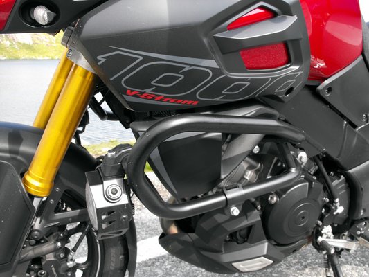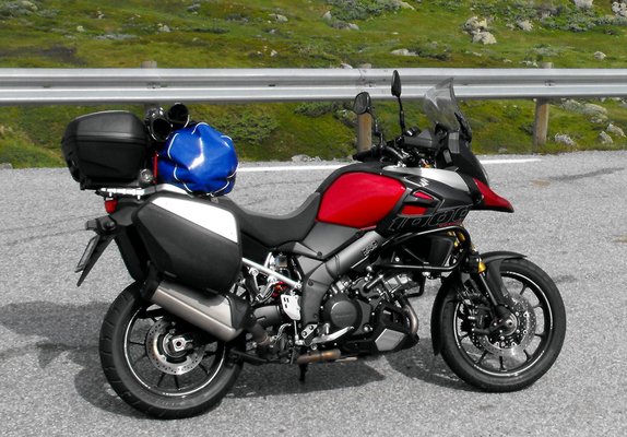 Az 1037 köbcentis motorblokk még a hajdani TL 1000 származéka, de a régi V-Strom 1000-rel is alig van egyező alkatrésze. A 40 köbcentivel nagyobb lökettérfogatot a furat két milliméteres növelésével érték el. Hengerenként kettős gyújtásának és dupla fojtószelepeinek hála finoman jár, kis fordulaton is terhelhető, már 4-5 ezren elváltva dinamikusan halad. Legnagyobb teljesítményét 8 ezer környékén adja le, de jobban esik közepes fordulaton szörfözni vele. A hangja kihúzatva sem érkezik meg, ráadásul ilyenkor egyből kettőbe nagy eséllyel lehet lyukat váltani. A hatodik fokozatot 80 km/h felett érdemes csak kapcsolni, 100-as tempónál 4000 körül forog a főtengely. 100 lóerő és ugyanennyi newtonméter két személlyel és csomagokkal is éppen elég, hegynek felfelé is. Hogy sose legyen sok, arra kigyorsításkor a két fokozatban állítható érzékenységű kipörgés-gátló, visszaváltásnál a nyomatékhatárolós csúszó kuplung ügyel. A „traction control” visszajelző lámpája vizes úton sem sűrűn villant fel, a norvég utak még nedvesen is tapadnak. Murván viszont kifejezetten hasznos dolog a felügyelet. A Suzuki első ilyen rendszere rángatás nélkül lép működésbe, és akadályozza meg hátsó kerék túlpörgését. Figyeli a kerekek fordulatszám-különbségét, a gázállást, a főtengely fordulatszámát és az aktuális sebességfokozatot is. Mindezekek figyelembe vételével szabályozza a gyújtást és az égéstérbe jutó keverék-mennyiséget, ezáltal a hátsó kerékre jutó teljesítményt is.