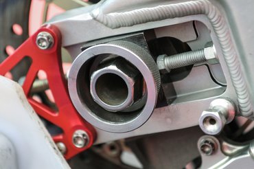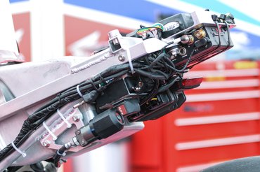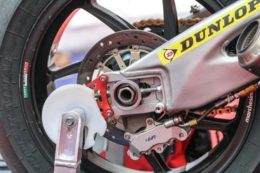 Az idei évtől minden motoron kötelező a hátsó lámpa, így a hátsó segédváz alján ezt, valamint a csapat által engedélyeztetett kamerát, és annak felvevőrészét láthatjuk. A motor magnéziumkerekekkel és karbon idomokkal van szerelve.