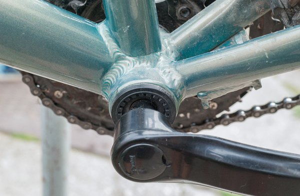 A középcsapágyak olyan egyszerű alkatrészek, hogy az ember nem is gondolná, hogy ezekkel is lehet baj. Az Alphában a pedálokat megrángatva érezni, hogy bizony kotyog. Ez még hagyományos, kónuszos rendszer, amely minimális karbantartással rengeteget kibír, ám valószínű, hogy itt inkább az anyaghasználatból ered a probléma. Természetesen utána lehet állítani, de nincs rá garancia, hogy két hét múlva nem kezdené újra. A Neuzerben monoblokk van, itt a kónuszt zárt csapágyak helyettesítik. Ez egy másik szemlélet, mert egyáltalán nem igényel karbantartást, de ha tönkremegy, akkor eldobhatjuk, és vehetünk másikat. Használtam ilyet a saját bringámban, és négy év alatt sem sikerült széthajtani.