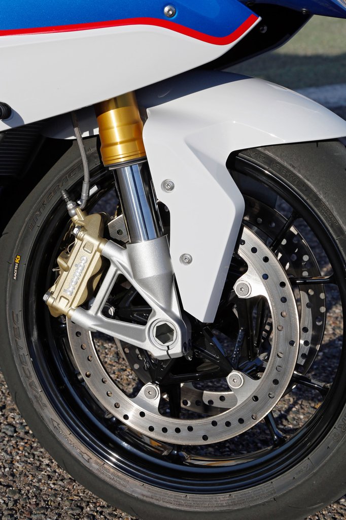 A térugrás utáni intenzív féktávon hatalmas segítség a váltóasszisztens. Bár határozottan kell a váltókarra lépni, a kiváló csúszókuplunggal és ABS-szel együtt szinte pihentetővé varázsolja az egyébként melós féktávot. Sport módban kigyorsításkor sűrűn felvillan a DTC visszajelző lámpája, de ez nem minden esetben jelent megcsúszást. A wheelie-control ilyenkor éppen csak engedi elemelkedni az első kereket, viszont az első generációs RR-el ellentétben nem ejti hirtelen vissza. A rendszert a Bosch helyett már a Conti szállítottja, és hihetetlenül kifinomultan működik, az elektronikus futóművel egyetemben. A HP4 esetében az igazán gyors pilótákat még zavarta, hogy jól érezhetően és némi késéssel állította a csillapítást. Az új RR-nél már senki nem panaszkodott, a hegyesebb geometriának köszönhető agilitás viszont mindenkinek tetszett. A szintén a HP4-hez utólag elérhető kanyar-ABS egyelőre még nem szerepel az opciós listán, de valószínűleg ez is csak idő kérdése.