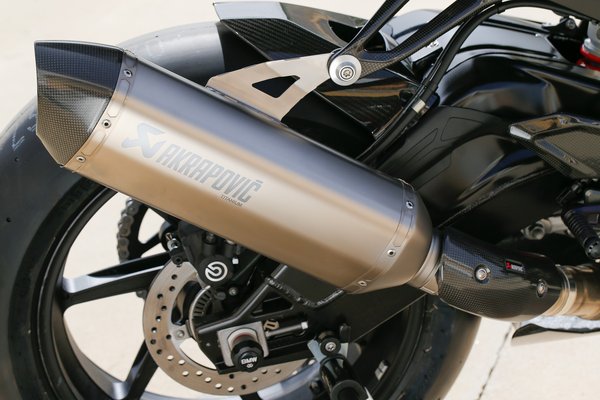 Az ebédszünetben volt időm meglesni a GPS-es adatrögzítő kiértékelését, és az egyéb kiegészítőket. Igazi döbbenet a Race Calibration Kit, ami az opciós motorvezérlő elektronikával együtt lehetővé teszi akár kanyarról kanyarra eltérő futómű-beállítás és motormenedzsment alkalmazását. Ez már tényleg űrtechnika, még a motorfék mértéke is sebességfokozathoz és motorfordulathoz állítható. A mart alumínium HP felnik együttesen két kilóval könnyebbek a szériánál. A szintén mart alu fékkarokat és állítható lábtartó konzolt a Gilles Tooling szállítja, a komplett titán kipufogórendszer szokás szerint az Akrapovic terméke.