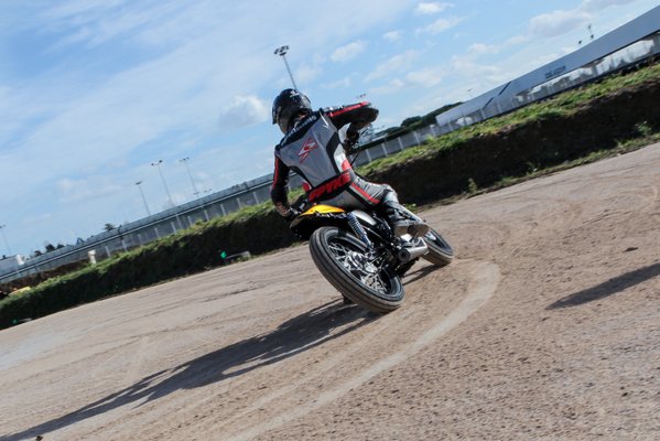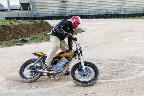 Harsogta Marco Belli, olasz flat track-legenda, és hasát fogta a nevetéstől, miközben birkóztam a zúzásra felkészített Deus Yamahával. Azt hittem, a fekete mamba gyorsaságával fogom elsajátítani a csúsztatásra specializált motorosiskola feladatait, de nem így történt.