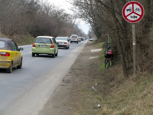 Túlérzékeny vagyok, ha ecetbe mártott tollal írok olyasmiről, amire mindenki csak megvonja a vállát? Nem – az említett furcsaságokra már egy éve felhívtam a figyelmet több kerékpáros portálon (például itt), természetesen gondosan megküldve a linket az illetékeseknek. Meg is kérdeztem őket: ha a kerékpárosok biztonságát szolgálja a tiltás, ahogy szeretnek rá hivatkozni, akkor a nem tiltott szakaszokon lelkiismeretlenül odavetnek minket az életveszélynek? Ha viszont nem veszélyes, akkor miért akadályozzák? Némi realitásérzékkel megáldott olvasóink már sejtik, mit válaszoltak és mit változtattak: semmit. Persze nem akarom túlértékelni magamat, akkor sem kötelező elolvasni egy cikkemet, ha odadugom valaki orra alá, de a Közútnak kötelessége (lenne) reagálni a bejelentésre, ha az rendellenességre hívja fel a figyelmet.