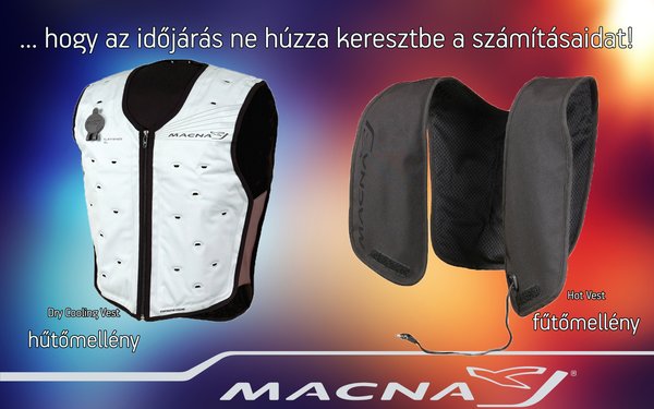 Mellénnyel persze nemcsak a forróság, hanem a hideg ellen is védekezhetünk. Ehhez a Macna másik terméke, a Hot Vest nyújt segítséget, amely bizonyos textilkabátokba illeszthető. Akkumulátorról akár nyolc órán keresztül melegíti a felsőtestet, hőmérséklete több fokozatban állítható. A mellény 35 900 forintért kapható.