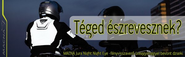 Évszaktól függetlenül is kulcsfontosságú a látni és látszani alapelv betartása. Mivel a motor jóval kisebb felületet jelent, mint egy autó, így fontos, hogy ne csak a lámpákkal, hanem ruházatunkkal is törekedjünk a minél jobb észlelhetőségre. Ezt a törekvést könnyíti meg a Macna Jura Night Eye dzseki, amelyet elöl és kétoldalt laminált fényvisszaverő betétekkel láttak el, a háton pedig tépőzáras előkészítés található LED-es világításhoz. A négyévszakos textildzseki víz- és szélálló, thermobélése kivehető. A könyök- és vállprotektorokat igény szerint szintén eltávolíthatjuk, a gerincvédőt pedig a kialakított protektorzsebbe helyezhetjük. Ára 114 900 forint.