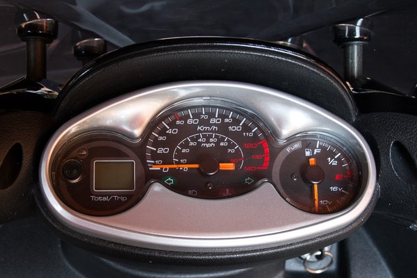 A Majesty 2007-re már szokatlanul jó műszerezettségű lett: van napi számlálója, benzinszint-mérője, de még feszültségmérőre is futotta. A digitális kijelző egyébként figyelmeztet az olajcserére, ami háromezrenként esedékes.