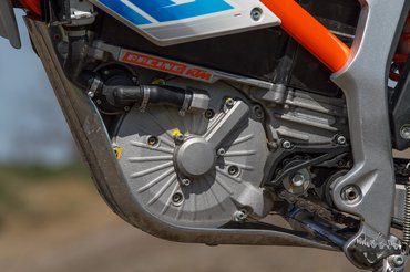 Az is hamar kiderült, hogy a KTM mérnökei komolyan gondolták, hogy sehogyan ne legyen kompatibilis a dedikált versenyendurókkal, így ha azokon hatpontos lánckerék van, akkor a Freeride-ra négypontosat szereltek, és hasonlóan jártak el a fék alkatrészeivel is.