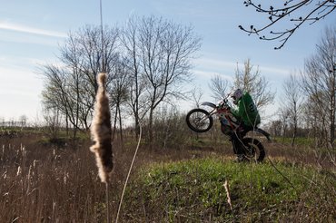 Az előítéletekre a személyes tapasztalat a gyógyír, ezért gyorsan felvettem a krosszsisakot, és elkezdtem az ismerkedést a jászfényszarui pályával. Szóltak előre, hogy szokni kell, utána viszont nagyon adni fogja. Nem hazudtak, elsőre én voltam a vak gyerek, akinek büntetésből átrendezték a szobáját. Nincs váltó, a hátsó féket a kuplung helyére tették, így felváltva kapirgáltam a jobb és bal lábammal – kívülről nevetséges volt, belülről némileg kínos, sőt, amikor hirtelen túl gyorsan érkeztem a mandinerbe, akkor már inkább félelmetes.