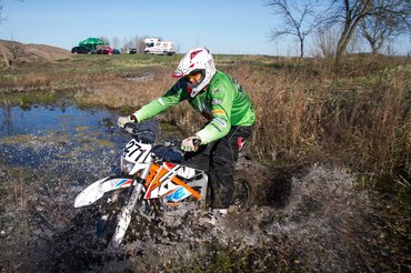 A teszt idejére már három versenyen túl voltak, és tapasztalatok alapján nem reménytelen az ügy. Eleinte úgy gondolták, hogy pont a rajtnál fog ellépni, hiszen neki nem kell az indítással vesződni. Ez csalódás volt. Nem a Freeride-ban, hanem a mezőnyben, ugyanis a modern endurók szinte azonnal életre kelnek, így mindössze 1-2 métert tudott kiugrani, amit aztán a nagyobb teljesítményű belső égésűek hamar bedarálták – főleg úgy, hogy a kétórás futam alatt nem kellett négyszer kiállniuk akksit cserélni. Viszont az élmezőnyben lehet vele maradni, sőt, kanyarban meglepően gyors tud lenni, a kezesség ott kamatozik, de a kigyorsításnál már nincs meg a kellő erő. Az extrém akadályokon cserébe megint nagy király az E-XC.