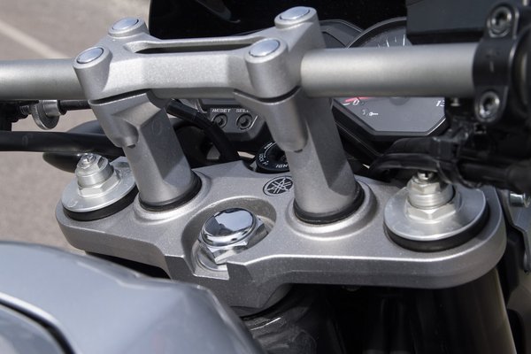 A kormány nagyon kellemes, streetfighteres pozíciót ad ki. A lábtartó magasan van, a térdszög hegyes, de még nem elviselhetetlen – nem tartom kizártnak, hogy pár óra után azért már megjön az inger a láb nyújtogatására, de az egyenes törzs miatt legalább a csukló nem fárad. Aki látott már sportmotoron kitekeredve nyújtózkodó szerencsétlent, az tudja, mekkora kincs ez, illetve egy durva nyári dugót sem érezni így extrém bikram jógázásnak. Szerpentinen pedig ez maga a vegytiszta buli, hosszú kanyarban spiccelve lóghatunk, gyors váltottakban pedig a széles kormánnyal dobhatjuk át az FZ-t egyik ívről a másikra.