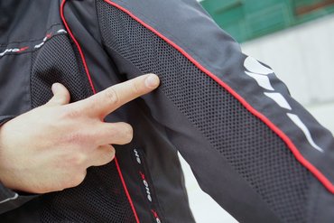 A fekete motorosruha több szempontból hülyeség. Egyrészt sötétben nem látszik, de világosban sem valami feltűnő, márpedig egy motoros szemszögéből nézve hasznos, ha nem olvad egybe a környezetével. Aztán jó időben, napsütésben, amikor a motorosok jellemzően motorozni szoktak, a fekete ruhában ezerszer hamarabb fő meg az ember, mint egy világosabb színűben. Az első problémán javítanak a kabát dizájnjának részét képező nagy fényvisszaverő grafikai elemek és csíkok, ezek a 3 Layer nadrágon is megtalálhatóak, az Ace-air nadrágon ilyesmi nincs. A dögmeleg ellen elég jól működik, hogy a nadrág és a kabát is hálós, a belső rétegek eltávolítása után elég jól szellőznek.