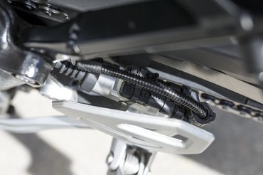 Az első villához hasonlóan működik a központi rugóstag is, a pillanatnyi helyzetet figyelve változik a csillapítás, a Road és Dynamic mód között jól érezhető a különbség. Próbálgattam, hogy elnyomkodom össze-vissza, és utána kitalálom, tízből tízszer összejött, miközben a menetprogramoknál többször is összetévesztettem az utcai üzemmódot a dinamikussal. Nagyjából itt tartottam a gondolatokkal, amikor végre kiértünk a szerpentinre.