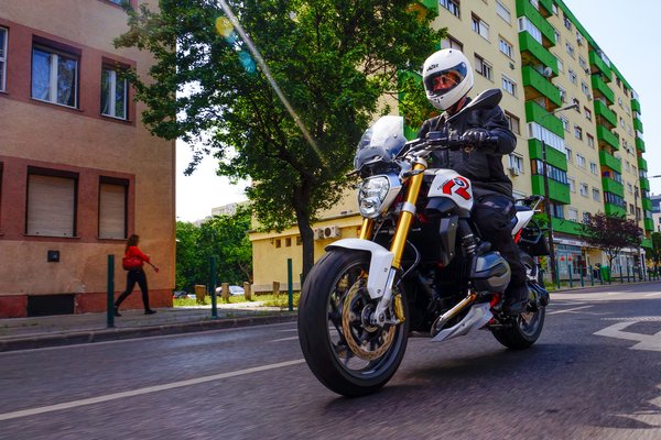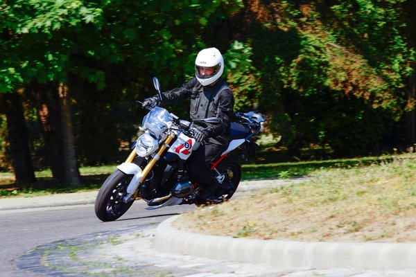 Az R1200R éppen 6500-as fordulatszámon a legnyomatékosabb és bőven hétezer fölött jön ki a legnagyobb teljesítménye, de négyezeröttől gázrántásra megmoccan a motor fara, pedig a Metzeler Roadtec Z8 a ma kapható legjobb utcai sportgumik egyike. Odakenhetünk belőle egy kicsit az aszfaltra, majd megfogja a kipörgésgátló, amely a blokkolásgátlóval együtt alapáras, de mindkettő kikapcsolható a kormányról.