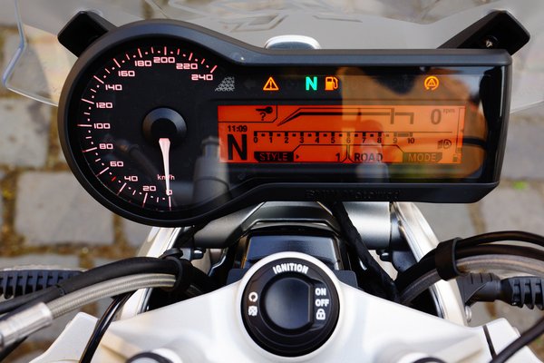 Bár az üléshelyzet tipikusan a mai nagy csupasz motorkerékpárokra jellemző, vagyis enyhén előredőlve érjük el a kormányt és combbal szoríthatjuk a széles tankot, óvakodnék attól, hogy túramotornak nevezzem az R1200R-t.