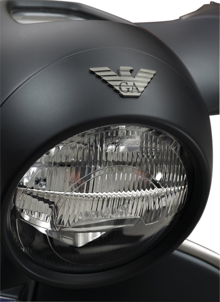 Ebből az alkalomból mi máshoz is nyúlhattak volna együtt, mint a legdrágább Vespához, a 946-oshoz? A fém alkatrészeket galvanizálták, majd az egész kaszni kapott egy finom selyemfényt – a meghatározó szín alapvetően a sötétszürke. A Vespa és a Piaggio logója mellett természetesen az Armani emblémája is helyet kapott a robogón.