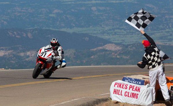 Sajnos az idei Pikes Peak-i felfutó sem telt halálos áldozat nélkül, azonban a versenynapok már komolyabb baleset nélkül zárultak le. Az időjárás viszont több kategóriában is megtréfálta az indulókat. A motorosoknál végül hondás siker született: Jeffrey Tigert 10:02.735-tel tudott nyerni egy CBR1000RR nyergében.