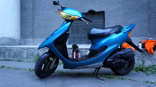 Pedig ez a gép kopott, karcos, leütött és mattult külseje alatt egészen merev vázat, elöl tárcsafékes futóművet, megerősített első villát és egy egészen tűzről pattant kétütemű kis motort rejt. Teljesen mindegy neki, hogy én ülök rajta saját mázsámmal vagy Stump Andris a maga 65 kilójával: ugyanolyan egykedvűen forogja le a sebmérő skáláját, és áll bele egykedvűen a tiltásba 67-68-as tempónál. Nem tudom, hogy hányszor látta lenyugodni a Napot a szent Fuji-hegy felett, és hányszor csúszott zörögve japán sikátorokban, de bárkié is volt, az nem panaszkodhatott a tempóra. 2012. októberi az utolsó japán feliratos matrica rajta. Egy ilyen gép megérdemli, hogy csillogjon még egy kicsit, hiszen imádjuk. És szerelni is jobb a tiszta dolgot, na meg a szomszéd nénik sem egy szakadt dolgot látnak a lépcsőházban, márpedig ami tiszta, az ellen nem robbantanak ki lázadást.