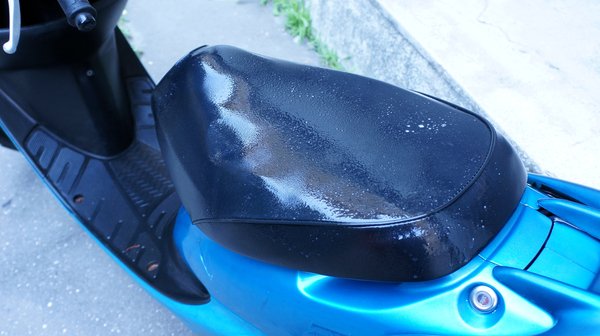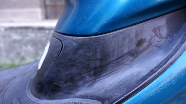 Ennek hátulütője csak annyi, mint minden hasonló szernek: nem szabad felforrósodott felületre felvinni. Szerencsére az első fázissal elmolyoltam annyit, hogy a kis robogó lehűljön, így nem sajnáltam tőle és megküldtem rendesen. Ilyesmit csak akkor csináljanak, ha tudják, mit kell tenni ezek után, mert a gyakorlatlan polírozó aztán lyukat kapar a karosszériába, mire eltünteti a megkeményedett viaszt vagy pasztát. Alapjában véve elemenként kellene az ilyesmit csinálni, de túlbuzgott bennem a tettvágy, ráadásul nagyon robogózhatnékom volt a rongyom pedig kitűnő, így tudtam, hogy a pöttöm Hondán hamar körbeérek, nem fog megkeményedni, kiszáradni az anyag.