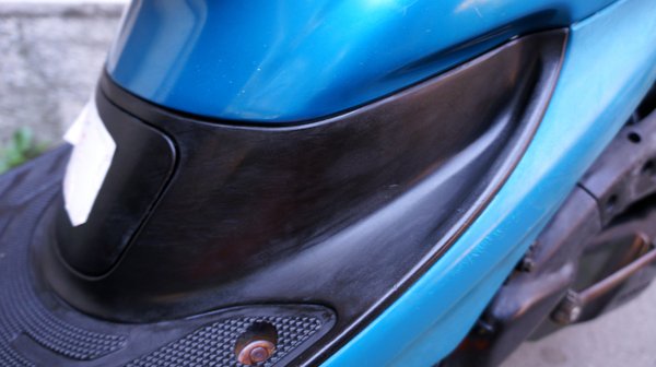 Mikor az ember közel hajolva matat, nem is látja a művet egészben, ezért, amikor kész lett, hátraléptem és hoppá! Ha nem is minden idők legszebb, de mindenképpen a kerület legmokányabb kis robogója állt előttem. Persze gazda szeme hizlalja a jószágot, de határozottan jobban nézett ki, pár méterről már egész pofás lett. Mondjuk lélekben nem fűztem nagy reményeket az iránt, hogy a lábtartó elem ill. burkolat ilyen szép, fekete marad mondjuk reggelig, gyorsan lefotóztam, így lesz legalább emléke az utókornak róla, és meg tudom mutatni, hogy ilyen is volt valamikor.